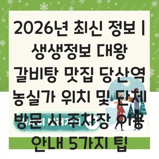 2026년 최신 정보 | 생생정보 대왕 갈비탕 맛집 당산역 농실가 위치 및 단체 방문 시 주차장 이용 안내 5가지 팁 혹시 생생정보에 나왔던 그 '대왕 갈비탕' 맛집을 찾고 계시나요? 검색창에 …