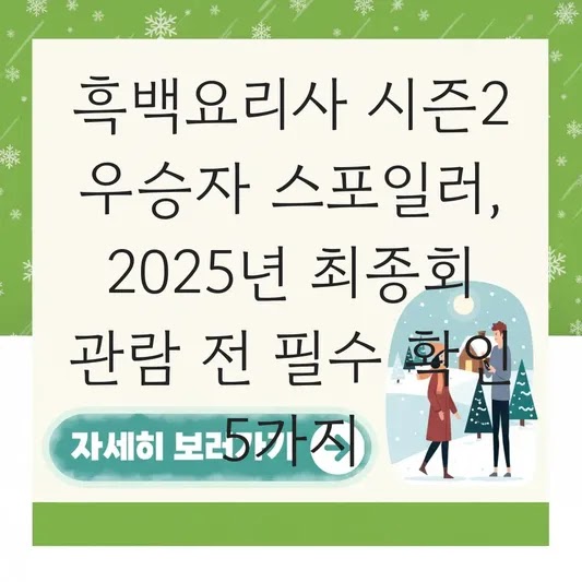 Q1: 흑백요리사 시즌2 최종 우승자는 언제 공식 발표되나요? A: 현재(2025년 12월 기준) 넷플릭스나 제작진 측에서 공식적인 흑백요리사 시즌2 우승자 스포일러를 발표하지 않았습니다. 일반적으로 최종회 방영 이후에 공식적으로 발표됩니다.