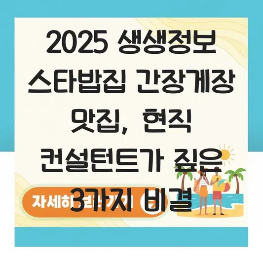 기업의 문제를 풀 듯, 일상생활에서도 비효율을 줄이고 최적의 선택을 하는 것이 중요합니다. 특히 ‘맛있는 한 끼 식사’를 위한 시간과 비용 투자는 신중해야 하죠. 방송에 나왔다고 무작정 찾아갔다가 후회하는 경험, 한 번쯤 있으실 겁니다. 이 글은 2025년 <생생정보>에서 소개된 ‘스타 밥집’ 간장게장 맛집 두 곳을 컨설턴트의 시각으로 분석하여, 여러분의 소중한 식사 경험을 위한 현명한 의사결정을 돕고자 합니다.