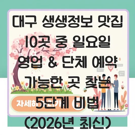 Q5: 대구 생생정보 맛집을 찾는 가장 효율적인 방법은 무엇인가요? A: 2026년 최신 기준으로 네이버 지도에 "대구 [지역명] 맛집"을 검색한 후, 필터링 기능에서 일요일 영업 및 단체석을 체크하는 것이 가장 효율적입니다. TV 맛집 리스트는 보조 자료로만 활용하세요.