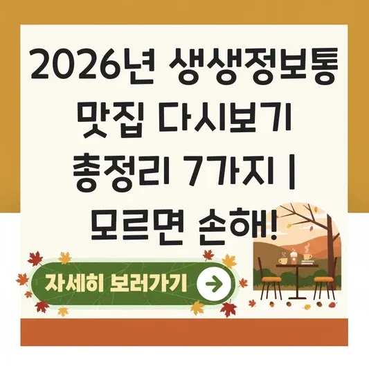 생생정보통 오늘 맛집 다시보기: 2026년 최신 데이터 기반 리스트 (예시)